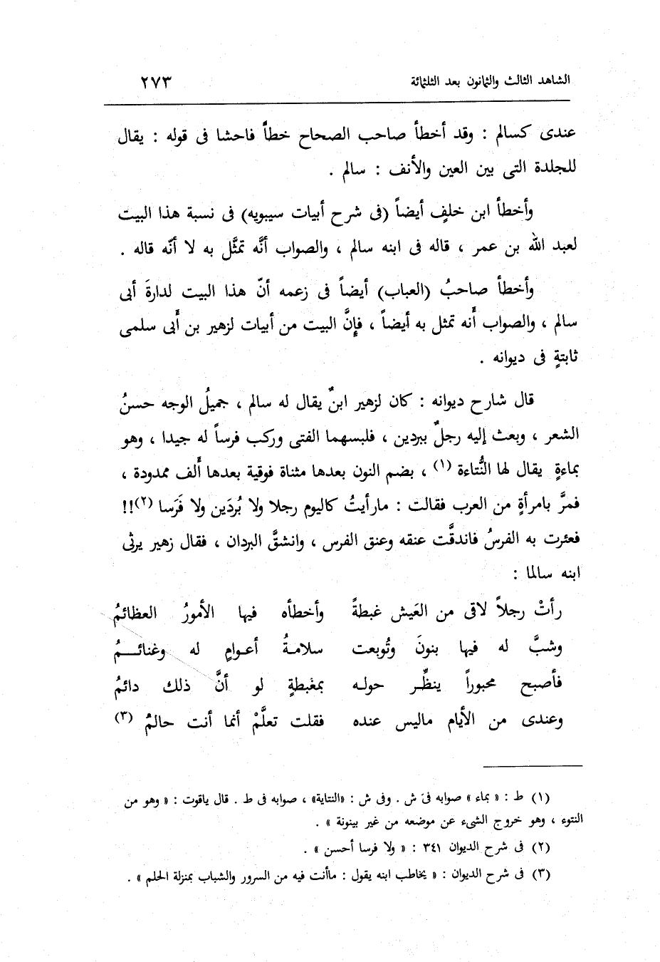 وَأَخْطَأ صَاحب الْعباب أَيْضا فِي زَعمه أَن هَذَا الْبَيْت لدارة أبي سَالم وَالصَّوَاب أَنه تمثل بِهِ أَيْضا فَإِن الْبَيْت من أَبْيَات لزهير بن أبي سلمى ثَابِتَة فِي ديوانه.