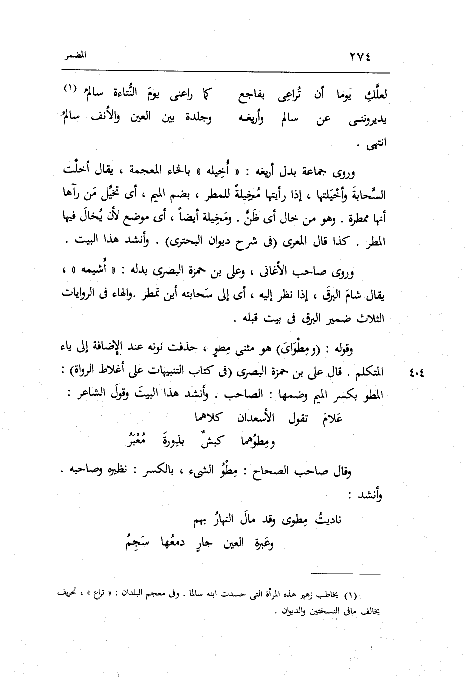 وروى صَاحب الأغاني وَعلي بن حَمْزَة الْبَصْرِيّ بدله: أشيمه يُقَال: شام الْبَرْق إِذا نظر إِلَيْهِ أَي: إِلَى سحابته أَيْن تمطر. وَالْهَاء فِي الرِّوَايَات الثَّلَاث ضمير الْبَرْق فِي بَيت قبله.