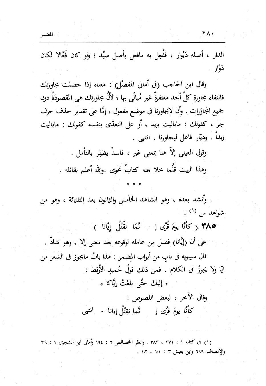فَمن ذَلِك قَول حميد الأرقط: إِلَيْك حتّى بلغت إيّاكا وَقَالَ الآخر لبَعض اللُّصُوص: كأنّا يَوْم قرّى إنّما نقْتل إيّانا انْتهى.