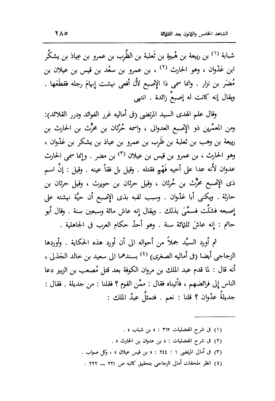 ثمَّ أورد السَّيِّد جملا من أَحْوَاله إِلَى أَن أورد هَذِه الْحِكَايَة. وأوردها الزجاجي أَيْضا فِي أَمَالِيهِ الصُّغْرَى بسندهما إِلَى سعيد بن خَالِد الجدلي أَنه قَالَ: لما قدم عبد الْملك بن مَرْوَان الْكُوفَة بعد قتل مُصعب بن الزبير دَعَا النَّاس إِلَى فرائضهم فأتيناه فَقَالَ: مِمَّن الْقَوْم فَقُلْنَا: من جديلة.