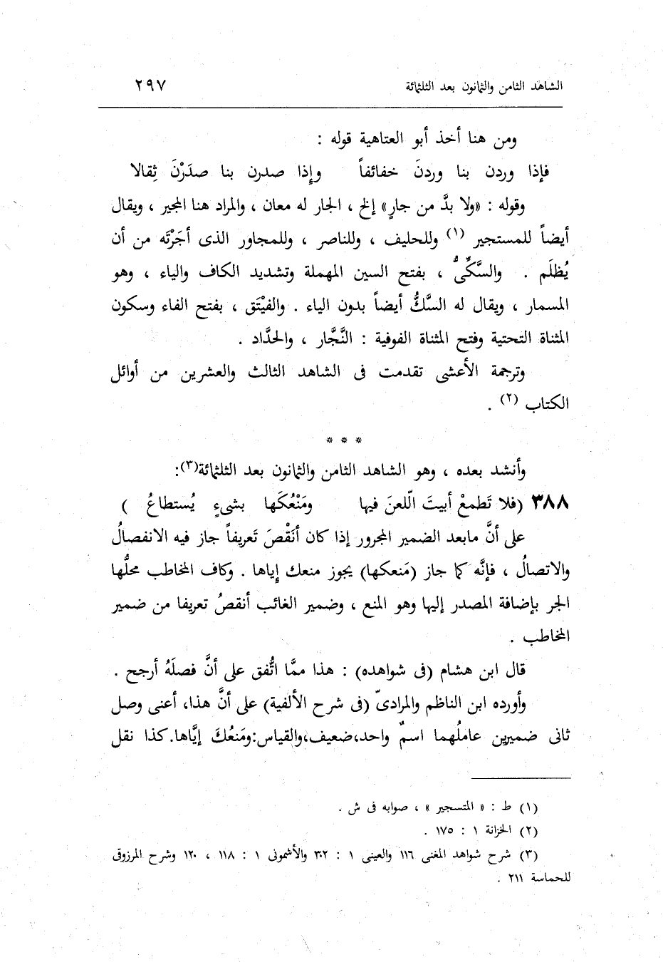 الشَّاهِد الثَّامِن وَالثَّمَانُونَ بعد الثلاثمائة الوافر