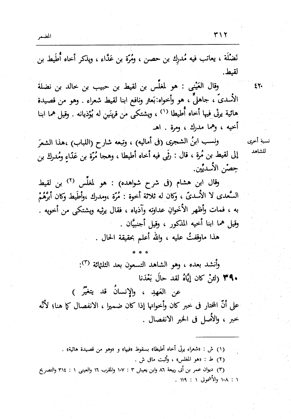 وَأنْشد بعده الشَّاهِد التِّسْعُونَ بعد الثلاثمائة الطَّوِيل