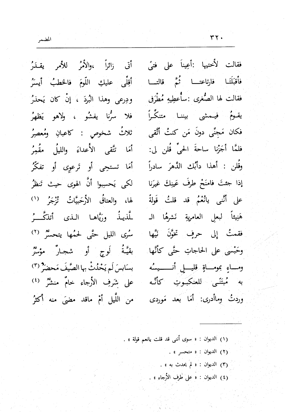 (فَقَالَت لأختيها أعينا على فَتى ... أَتَى زَائِرًا وَالْأَمر لِلْأَمْرِ يقدر)