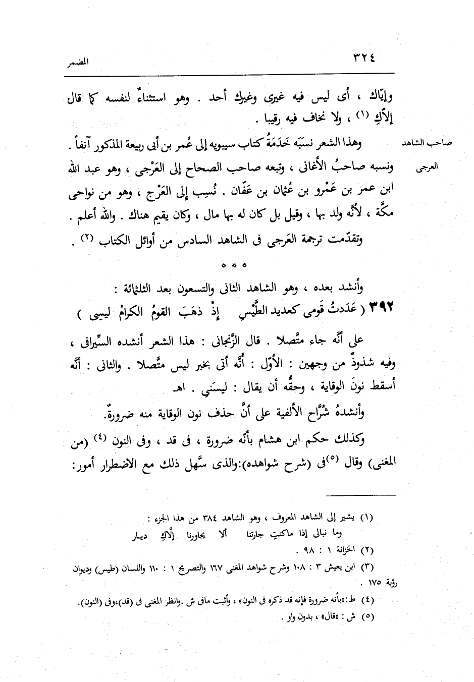 وَأنْشد بعده الشَّاهِد الثَّانِي وَالتِّسْعُونَ بعد الثلاثمائة الرجز