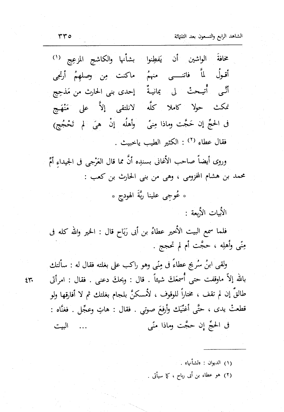 فَلَمَّا سمع الْبَيْت الْأَخير عَطاء بن أبي رَبَاح قَالَ: الْخَيْر وَالله كُله فِي منى وَأَهله
