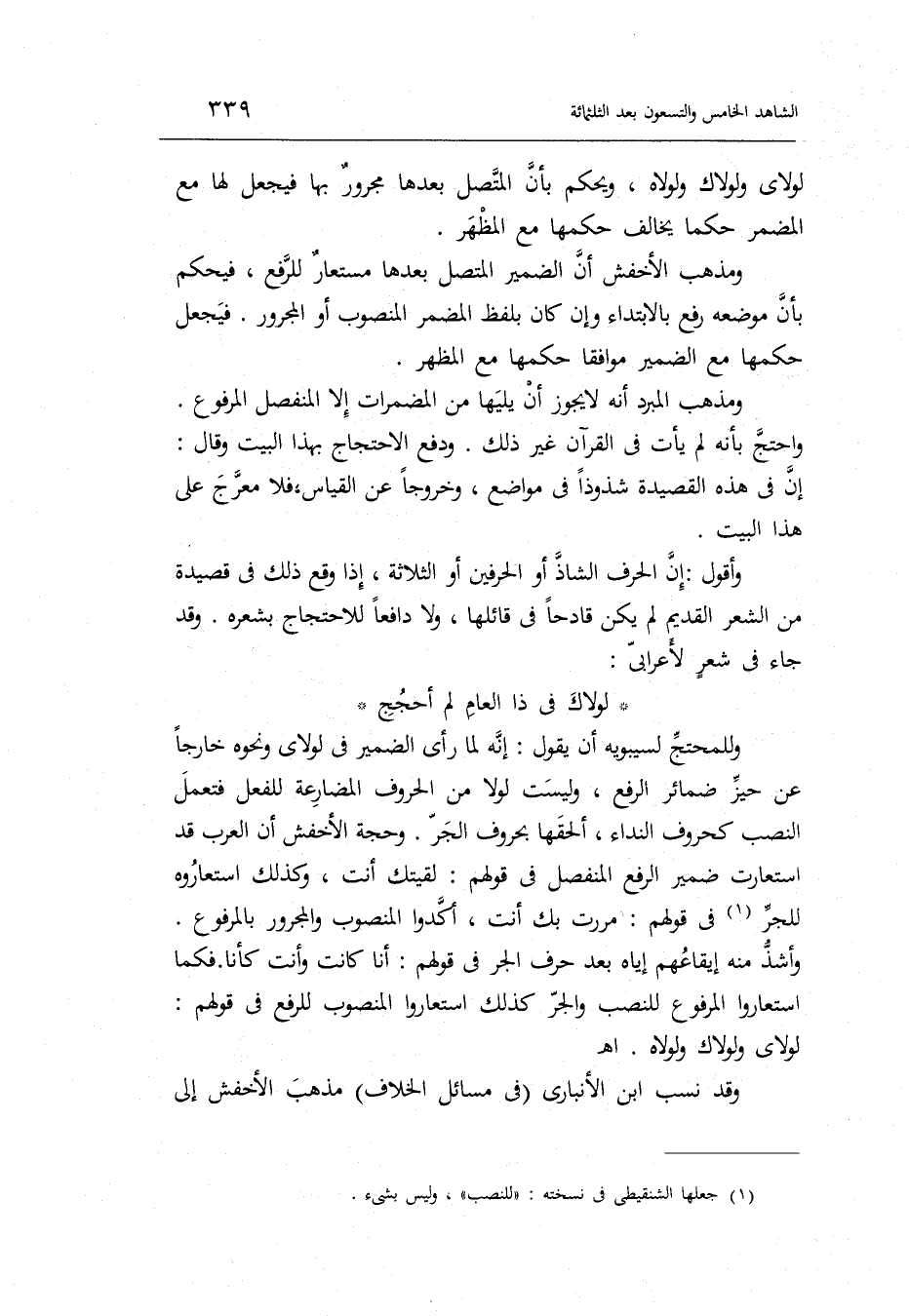 وَقد نسب ابْن الْأَنْبَارِي فِي مسَائِل الْخلاف مَذْهَب الْأَخْفَش إِلَى