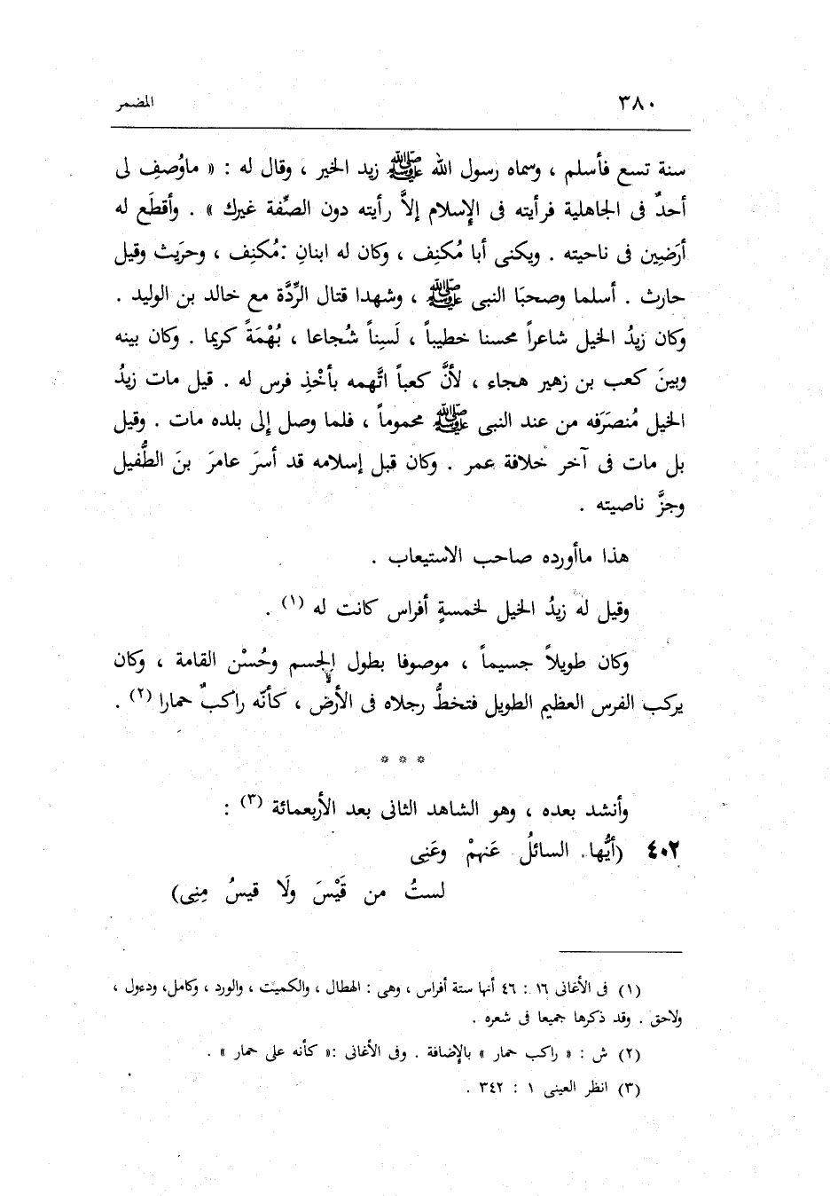وَقيل لَهُ زيد الْخَيل لخمسة أَفْرَاس كَانَت لَهُ.