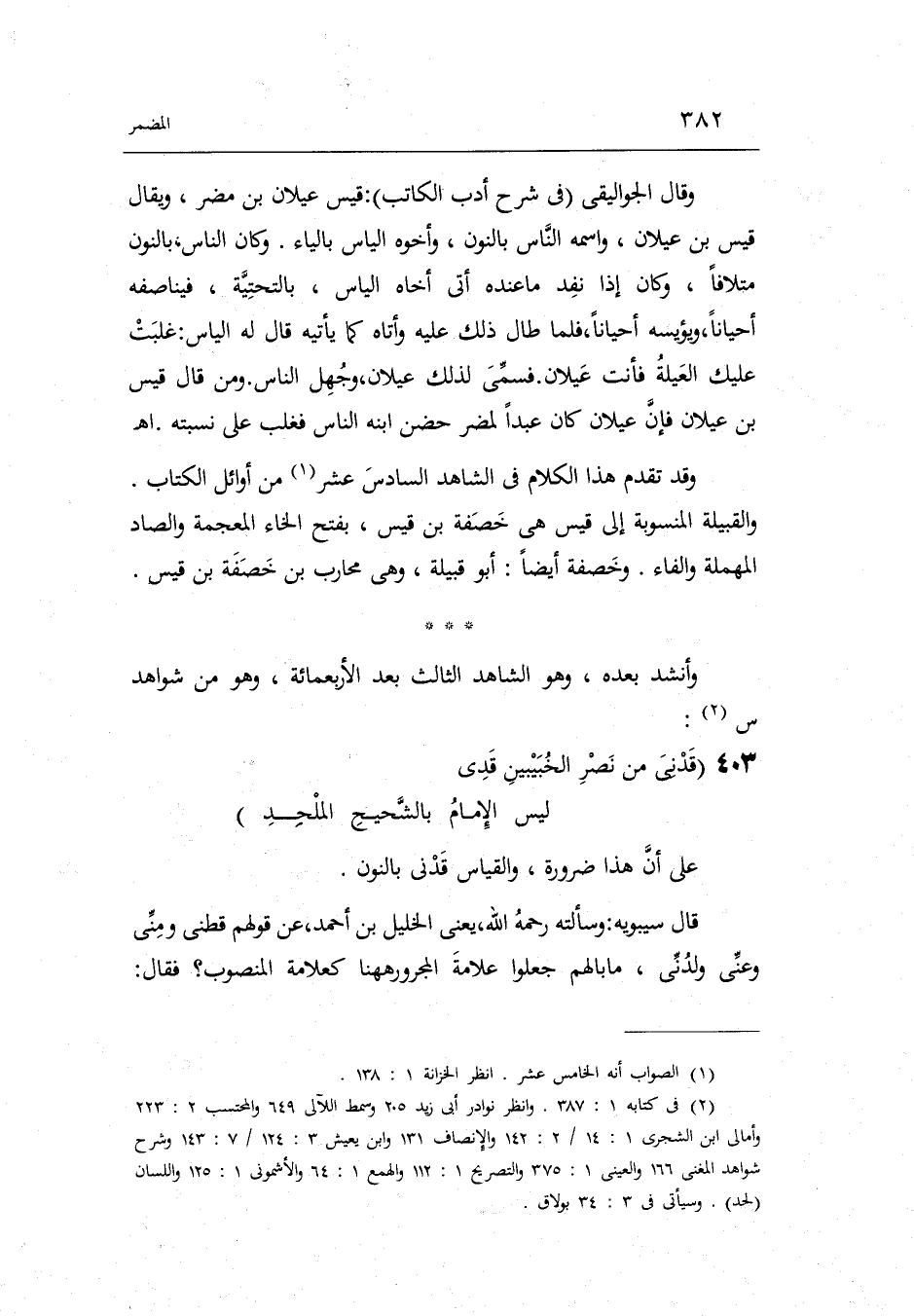 (قدني من نصر الخبيبين قدي ... لَيْسَ الإِمَام بالشّحيح الملحد)