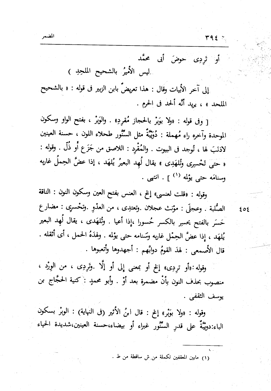 (أَو تردي حَوْض أبي محمّد ... لَيْسَ الْأَمِير بالشّحيح الملحد)