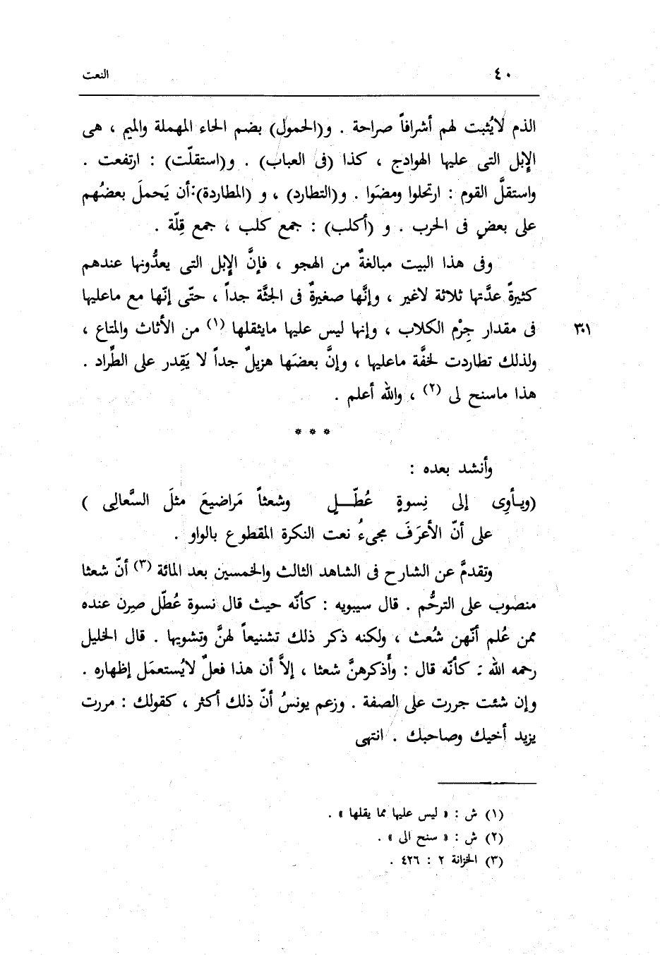 على أَن الأعرف مَجِيء نعت النكرَة الْمَقْطُوع بِالْوَاو.)