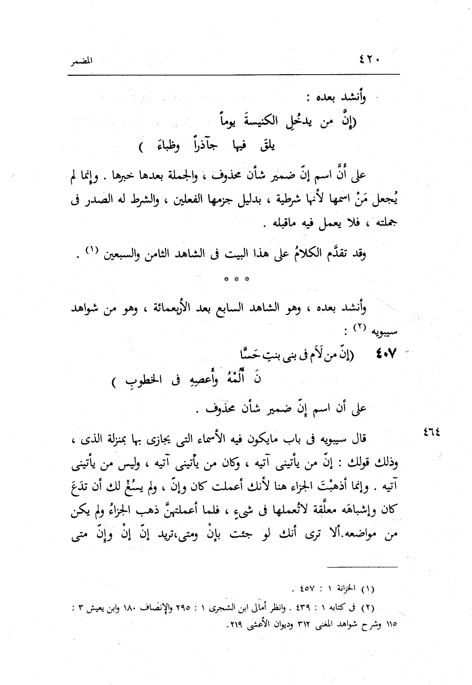 الشَّاهِد السَّابِع بعد الأربعمائة وَهُوَ من شَوَاهِد سِيبَوَيْهٍ: الْخَفِيف