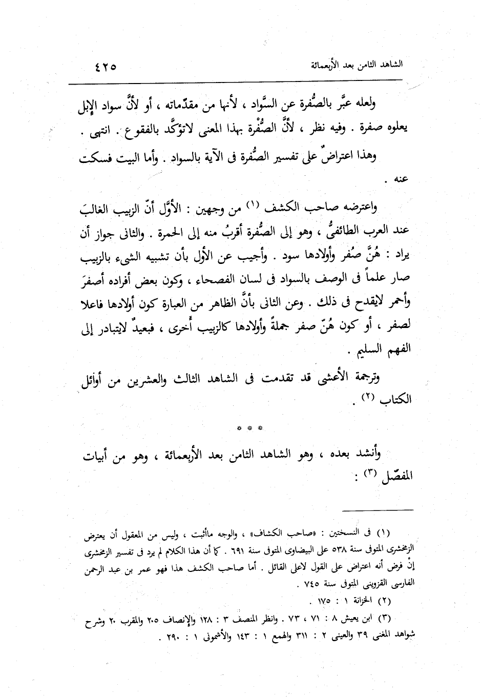 الشَّاهِد الثَّامِن بعد الأربعمائة وَهُوَ من أَبْيَات الْمفصل: