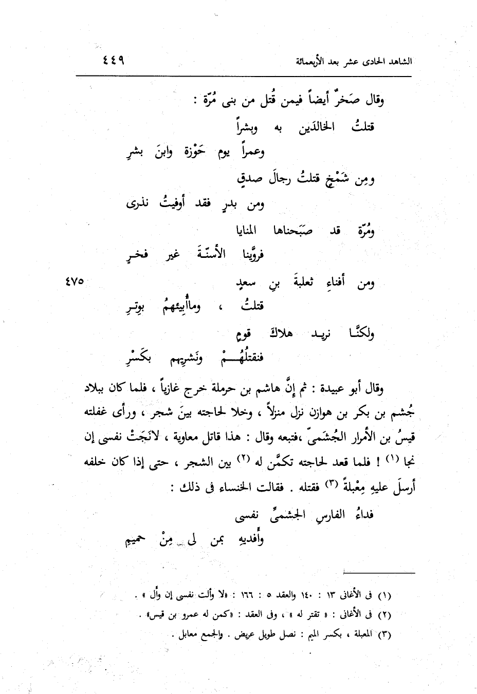فَقَالَت الخنساء فِي ذَلِك: الوافر