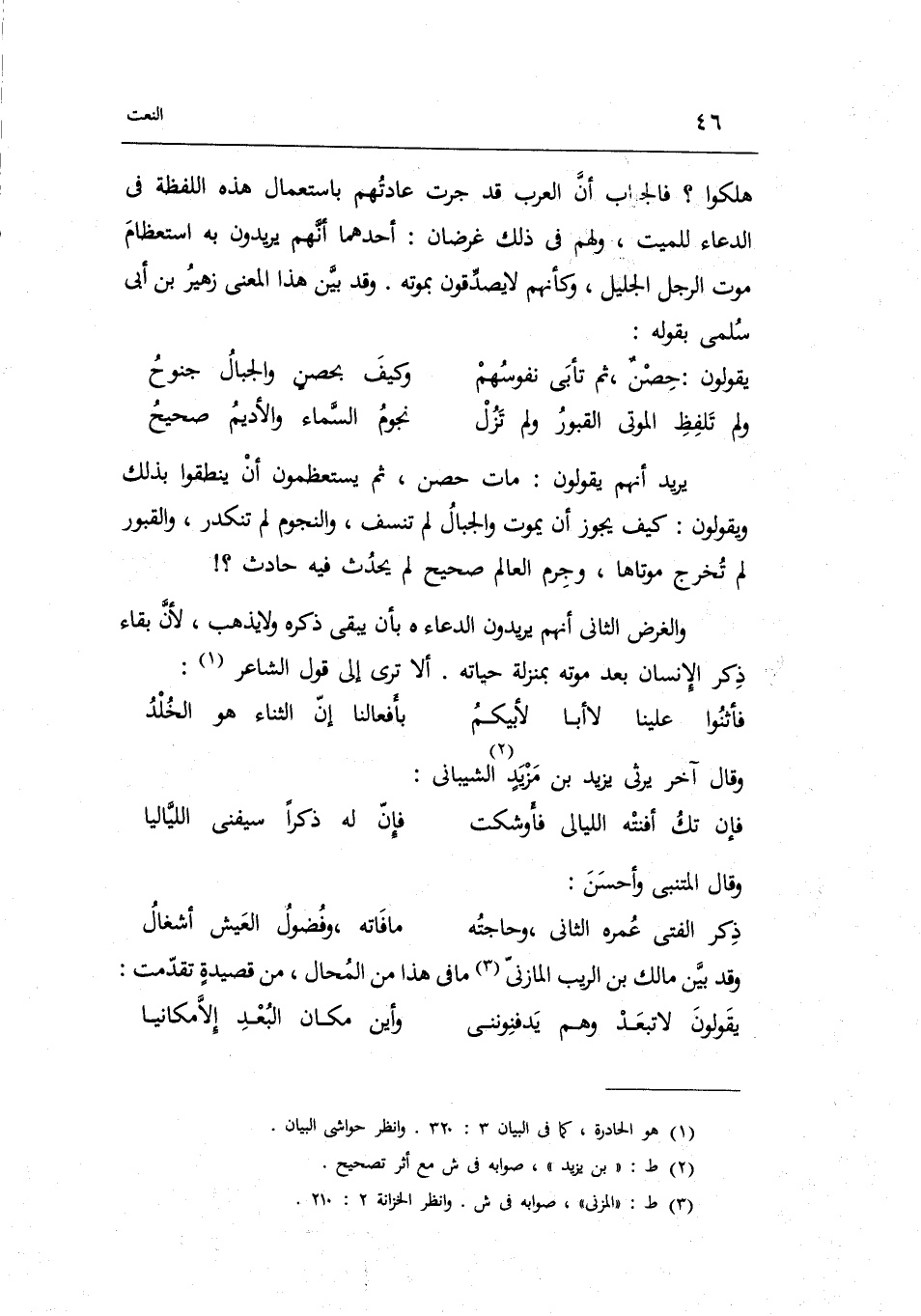 هَلَكُوا فَالْجَوَاب أَن الْعَرَب قد جرت عَادَتهم بِاسْتِعْمَال هَذِه اللَّفْظَة فِي الدُّعَاء للْمَيت وَلَهُم فِي ذَلِك غرضان: أَحدهمَا: أَنهم يُرِيدُونَ بِهِ استعظام موت الرجل الْجَلِيل وَكَأَنَّهُم لَا يصدقون بِمَوْتِهِ. وَقد بَين هَذَا الْمَعْنى النَّابِغَة الذبياني بقوله: الطَّوِيل