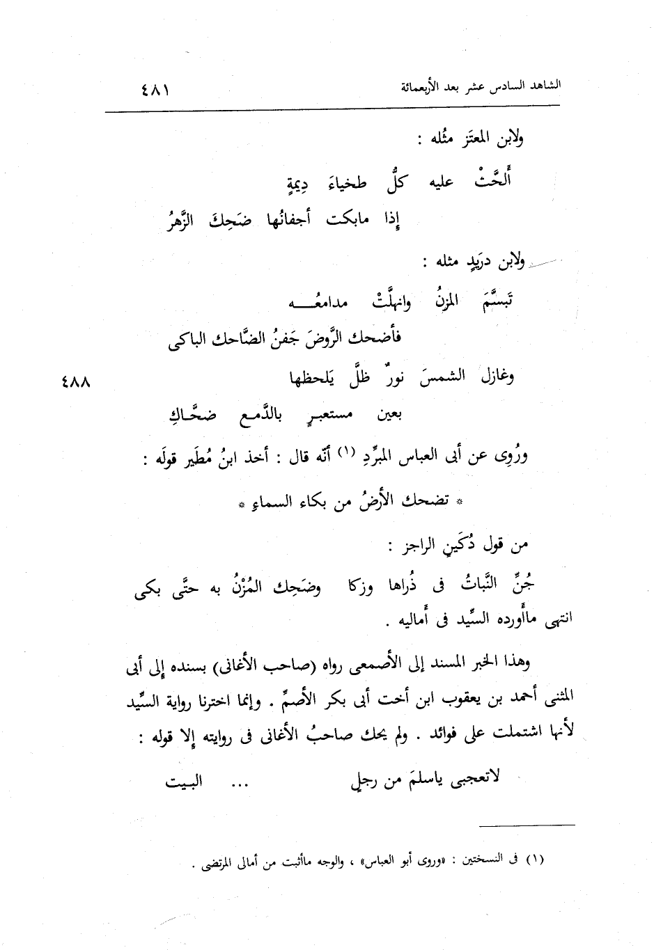 وَهَذَا الْخَبَر الْمسند إِلَى الْأَصْمَعِي رَوَاهُ صَاحب الأغاني بِسَنَدِهِ إِلَى أبي الْمثنى أَحْمد بن يَعْقُوب ابْن أُخْت أبي بكر الْأَصَم وَإِنَّمَا اخترنا رِوَايَة السَّيِّد لِأَنَّهَا اشْتَمَلت على فَوَائِد.