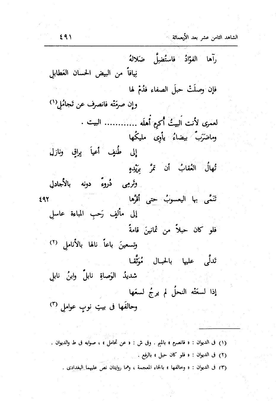 (إِذا لسعته النّحل لم يرج لسعها ... وحالفها فِي بَيت نوبٍ عوامل)