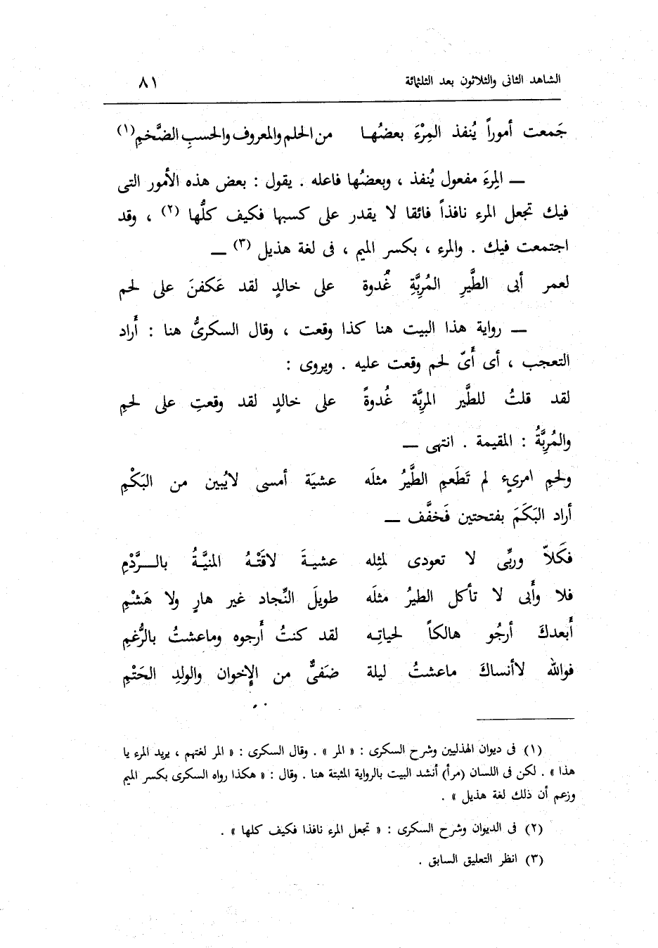 رِوَايَة هَذَا الْبَيْت هُنَا كَذَا وَقعت وَقَالَ السكرِي هُنَا: أَرَادَ التَّعَجُّب أَي: أَي لحم وَقعت عَلَيْهِ.