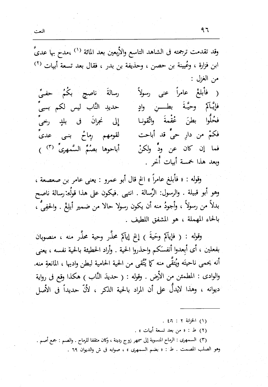 (فأبلغ عَامِرًا عنّي رَسُولا ... رِسَالَة ناصحٍ بكم حفيّ)