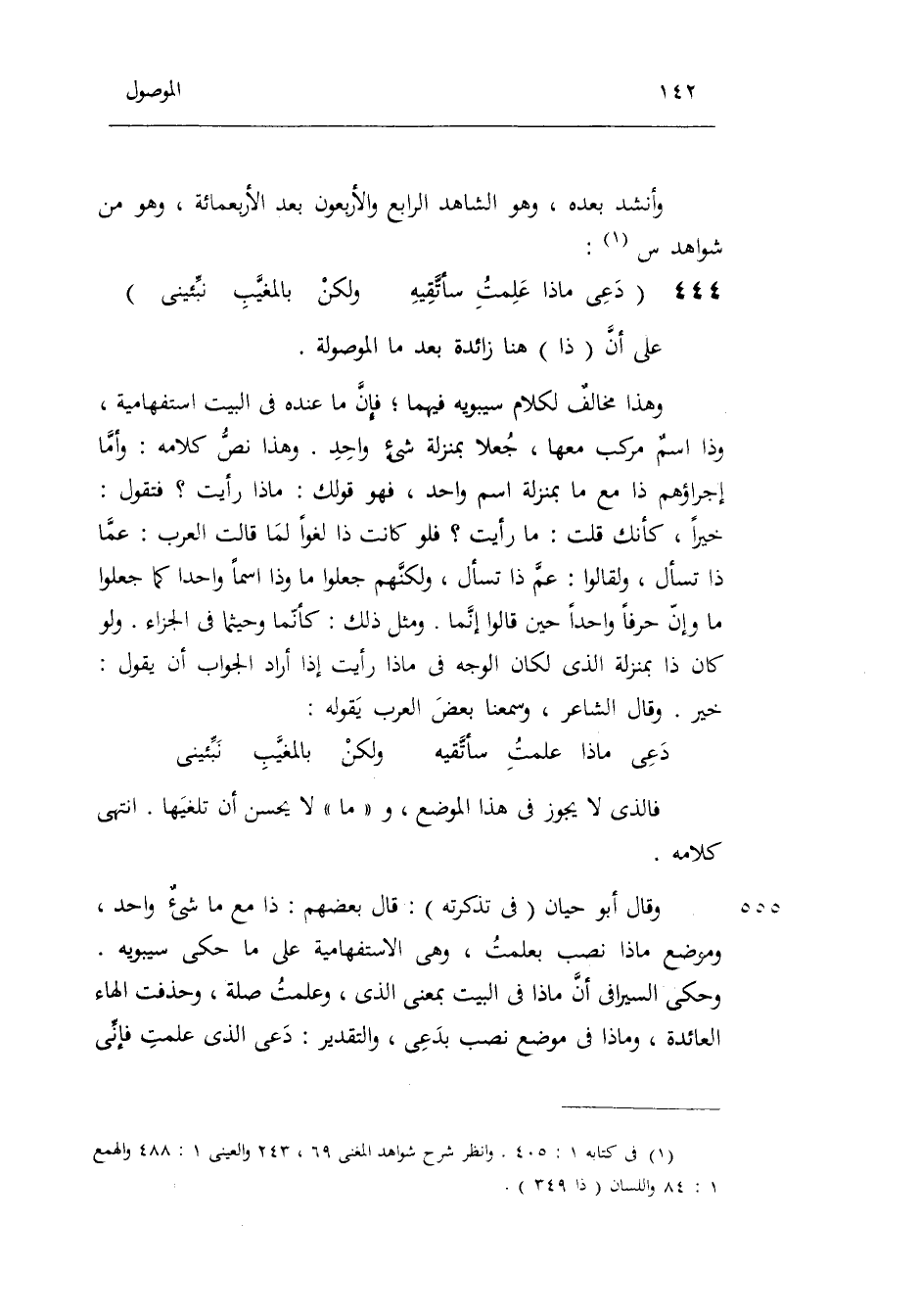 الشَّاهِد الرَّابِع وَالْأَرْبَعُونَ بعد الأربعمائة وَهُوَ من شَوَاهِد س: