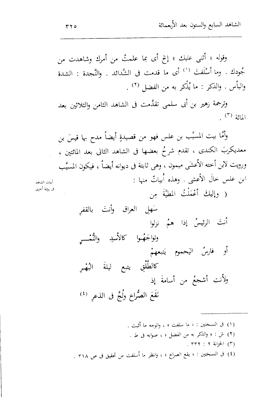 وَالذكر: مَا يذكر بِهِ من الْفضل. وترجمة زُهَيْر بن أبي سلمى تقدّمت فِي الشَّاهِد الثَّامِن وَالثَّلَاثِينَ بعد الْمِائَة. وَأما بَيت الْمسيب بن علس فَهُوَ من قصيدةٍ أَيْضا مدح بهَا قيس بن معديكرب الْكِنْدِيّ تقدم شرح بَعْضهَا فِي الشَّاهِد الثَّانِي بعد الْمِائَتَيْنِ وَرويت لِابْنِ أُخْته الْأَعْشَى مَيْمُون وَهِي ثَابِتَة فِي ديوانه أَيْضا فَيكون الْمسيب بن علس خَال الْأَعْشَى. وَهَذِه أبياتٌ مِنْهَا: