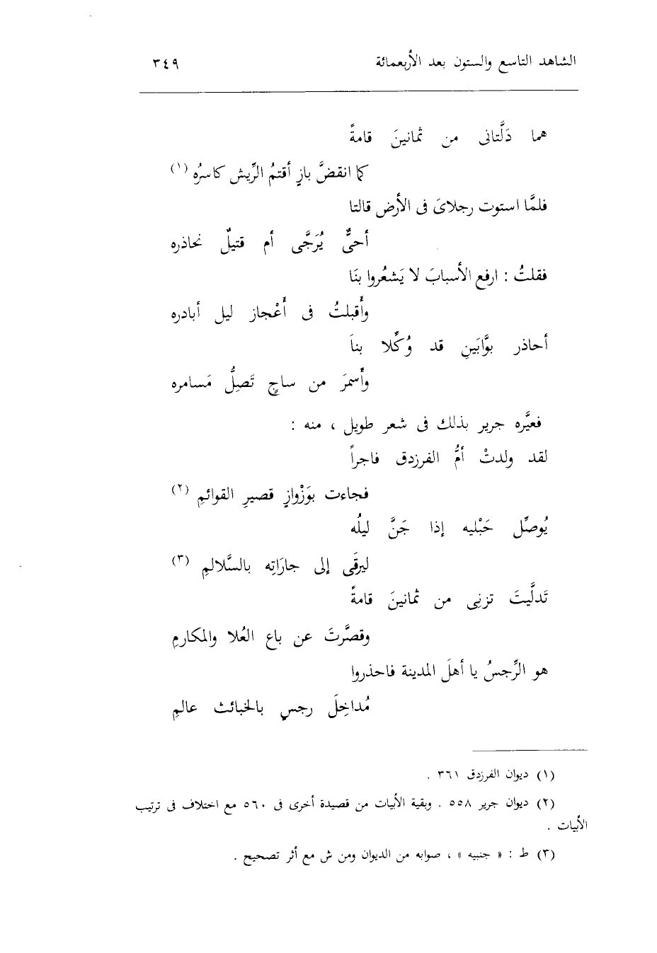 (لقد ولدت أم الفرزدق فَاجِرًا ... فَجَاءَت بوزوازٍ قصير القوائم)