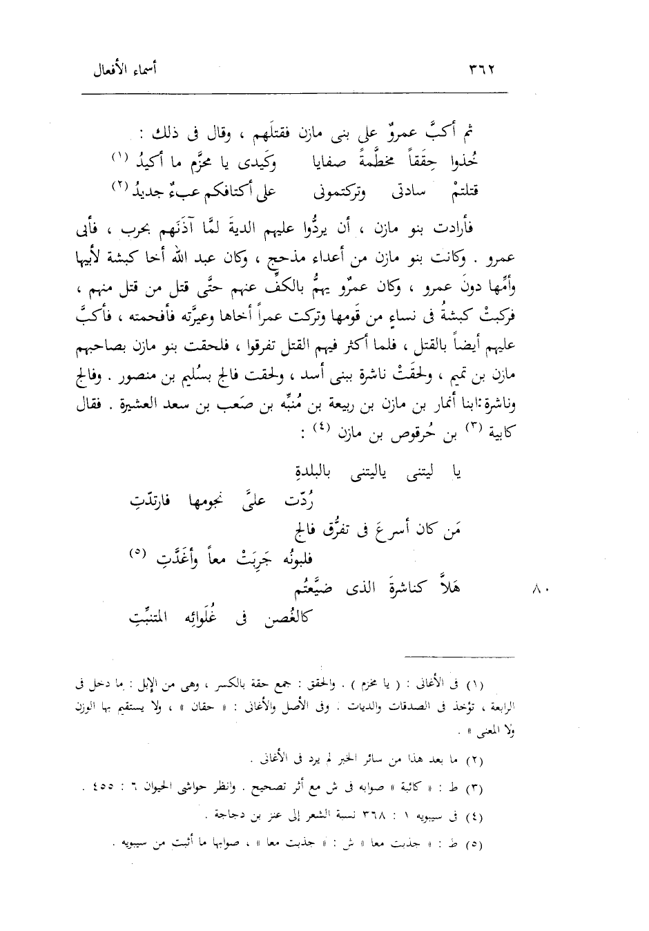 . ثمَّ أكب عمرٌ وعلى بني مَازِن وهم غَارونَ بِقَتْلِهِم وَقَالَ فِي ذَلِك:)