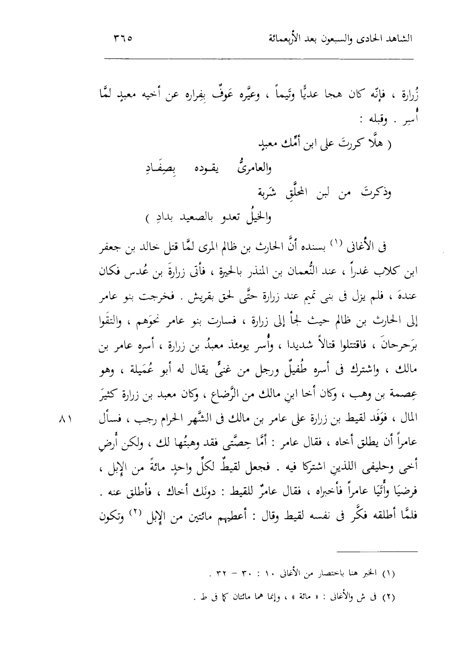 زُرَارَة فَإِنَّهُ كَانَ هجا عديا وتيماً وعيره عوفٌ بفراره عَن أَخِيه معبدٍ لما أسر. وَقَبله: