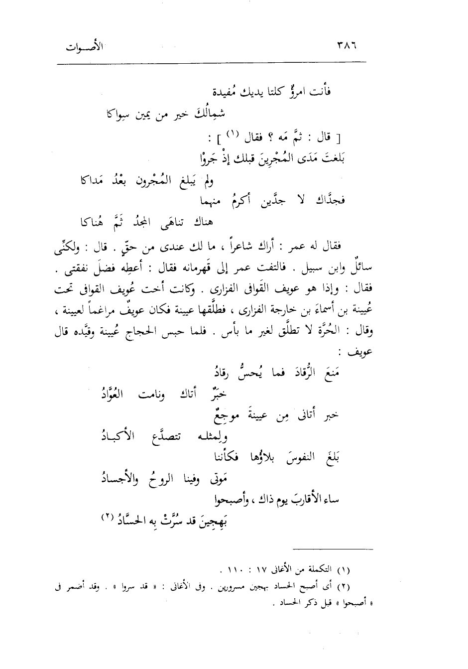 (خبرٌ أَتَانِي من عُيَيْنَة موجعٌ ... ولمثله تتصدع الأكباد)