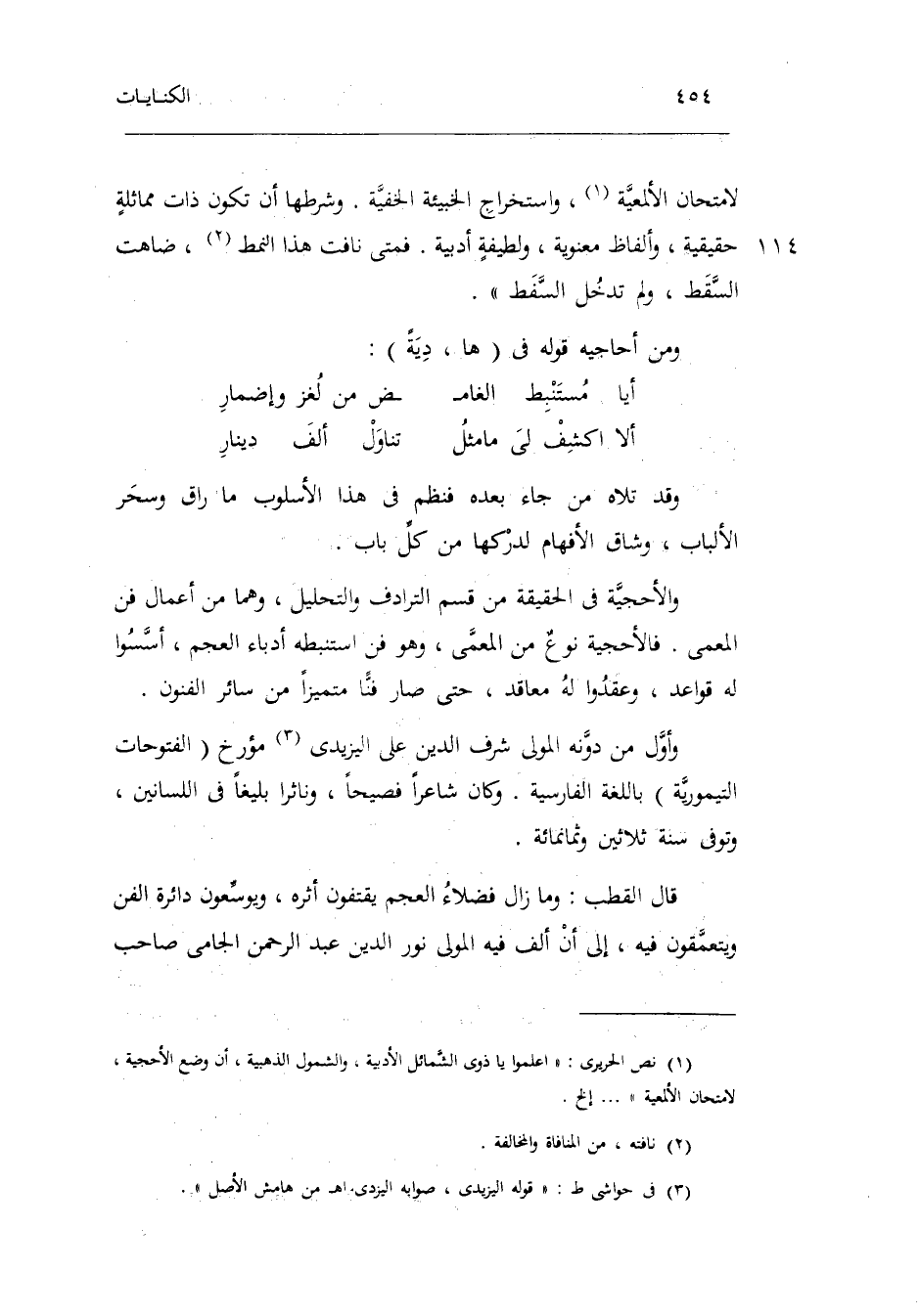 باللغة الفارسية. وَكَانَ شَاعِرًا فصيحاً وناثراً بليغاً فِي اللسانين وَتُوفِّي سنة ثَلَاثِينَ وَثَمَانمِائَة. قَالَ القطب: وَمَا زَالَ فضلاء الْعَجم يقتفون أَثَره ويوسعون دَائِرَة الْفَنّ ويتعمقون فِيهِ إِلَى أَن ألف فِيهِ الْمولى نور الدَّين عبد الرَّحْمَن الجامي صَاحب
