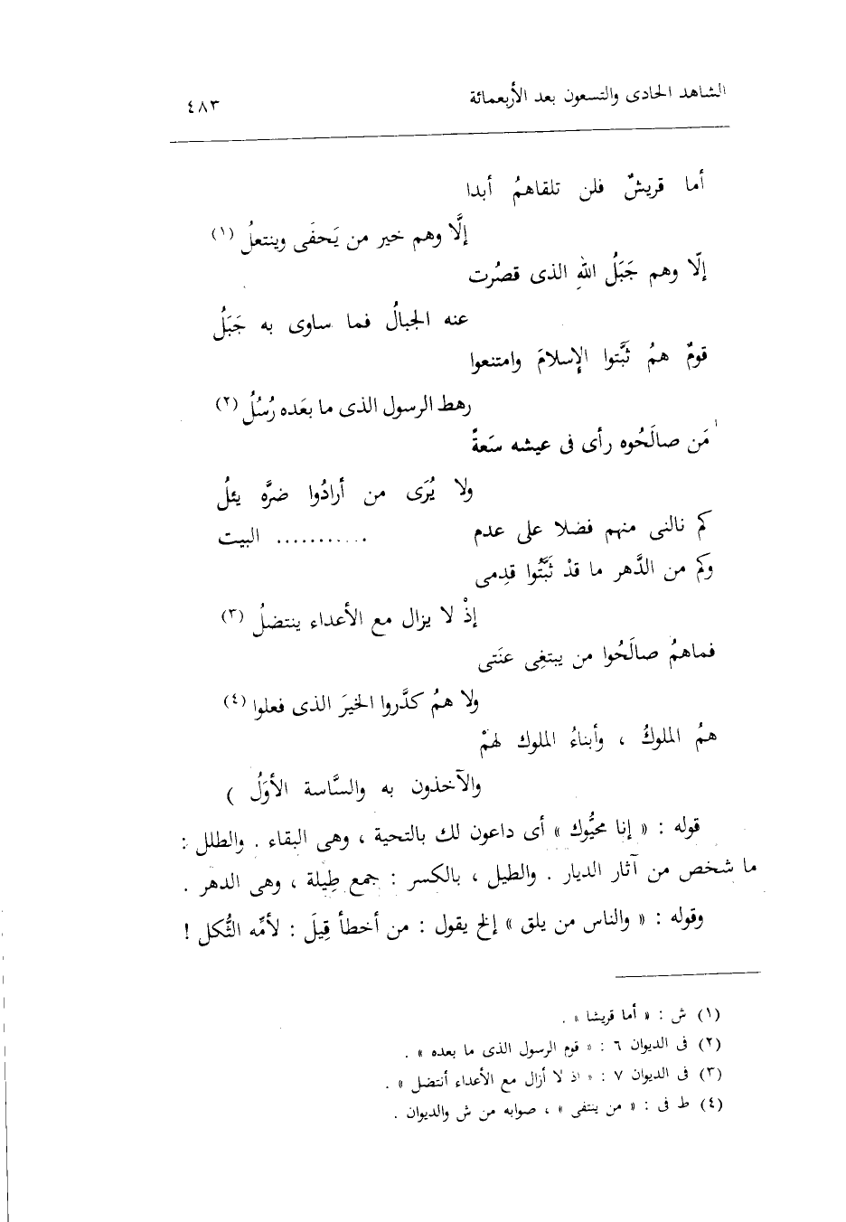 (إِلَّا وهم جبل الله الَّذِي قصرت ... عَنهُ الْجبَال فَمَا سَاوَى بِهِ جبل)