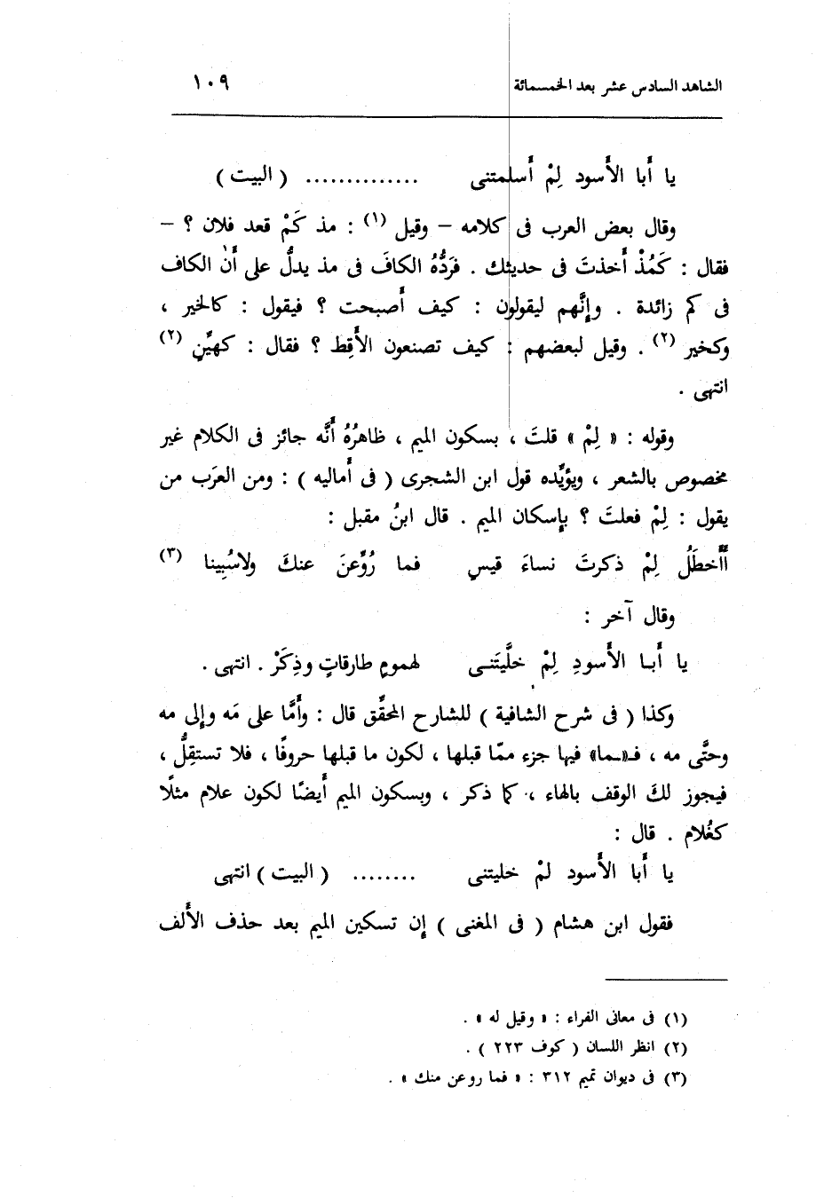 وَقَوله: لم قلت بِسُكُون الْمِيم ظَاهره أَنه جَائِز فِي الْكَلَام ير مَخْصُوص بالشعر وَيُؤَيِّدهُ قَول ابْن الشجري فِي أَمَالِيهِ: وَمن الْعَرَب من يَقُول: لم فعلت بِإِسْكَان الْمِيم.)