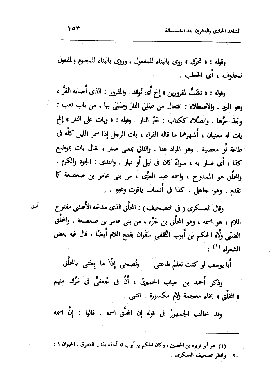 وَقَالَ العسكري فِي التَّصْحِيف: المحلق الَّذِي مدحه الْأَعْشَى مَفْتُوح اللَّام هُوَ اسْمه وَهُوَ المحلق بن جُزْء من بني عَامر بن صعصعة. والمحلق الضَّبِّيّ ولاه الحكم بن أَيُّوب الثَّقَفِيّ سفوان بِفَتْح اللَّام أَيْضا قَالَ فِيهِ بعض الشُّعَرَاء: الطَّوِيل