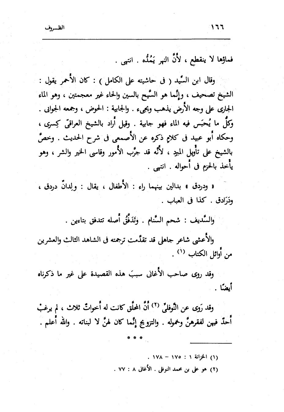 وَقَالَ ابْن السَّيِّد فِي حَاشِيَته على الْكَامِل: كَانَ الْأَحْمَر يَقُول: الشَّيْخ تَصْحِيف وَإِنَّمَا هُوَ السيح بِالسِّين والحاء غير معجمتين وَهُوَ المَاء الْجَارِي على وَجه الأَرْض يذهب وَيَجِيء. والْجَابِيَة: الْحَوْض وَجمعه الجوابي. وكل مَا يحبس فِيهِ المَاء فَهُوَ جابية. وَقيل: أَرَادَ بالشيخ الْعِرَاقِيّ كسْرَى.