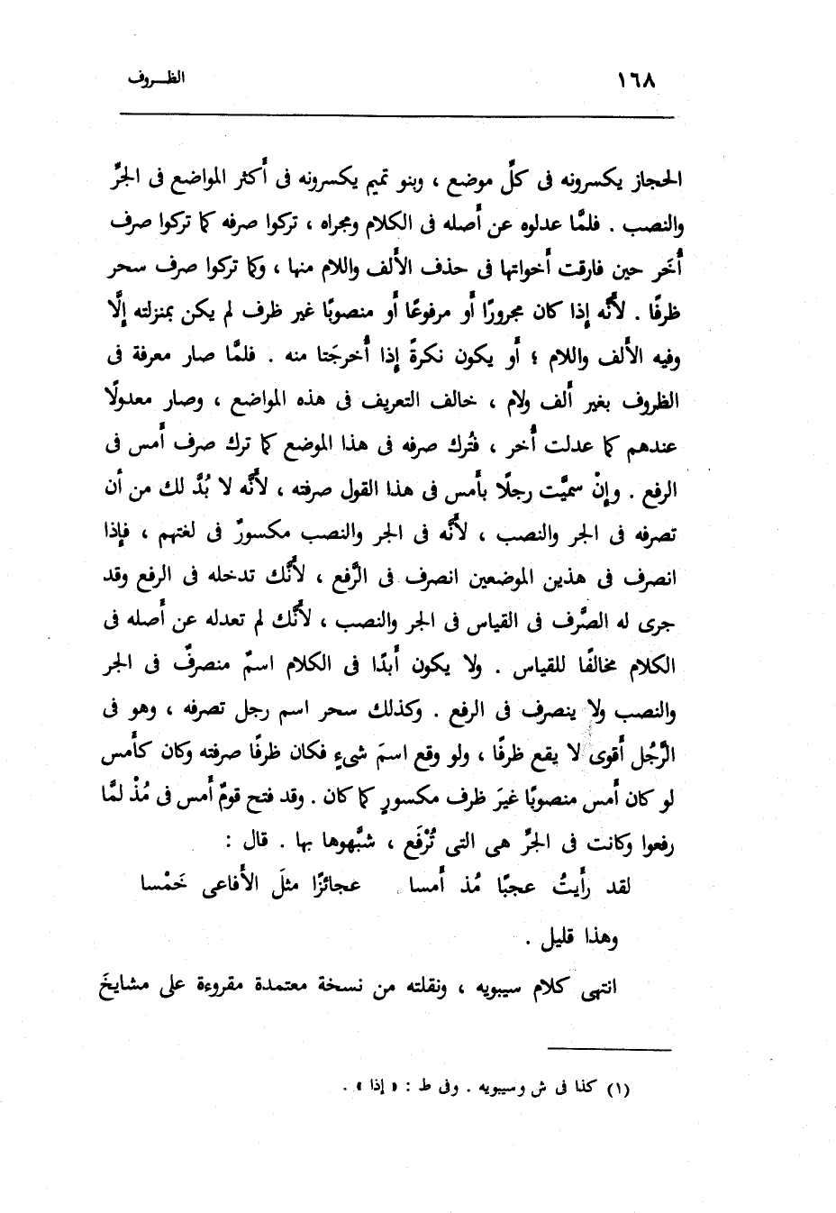 انْتهى كَلَام سِيبَوَيْهٍ ونقلته من نُسْخَة مُعْتَمدَة مقروءة على مَشَايِخ