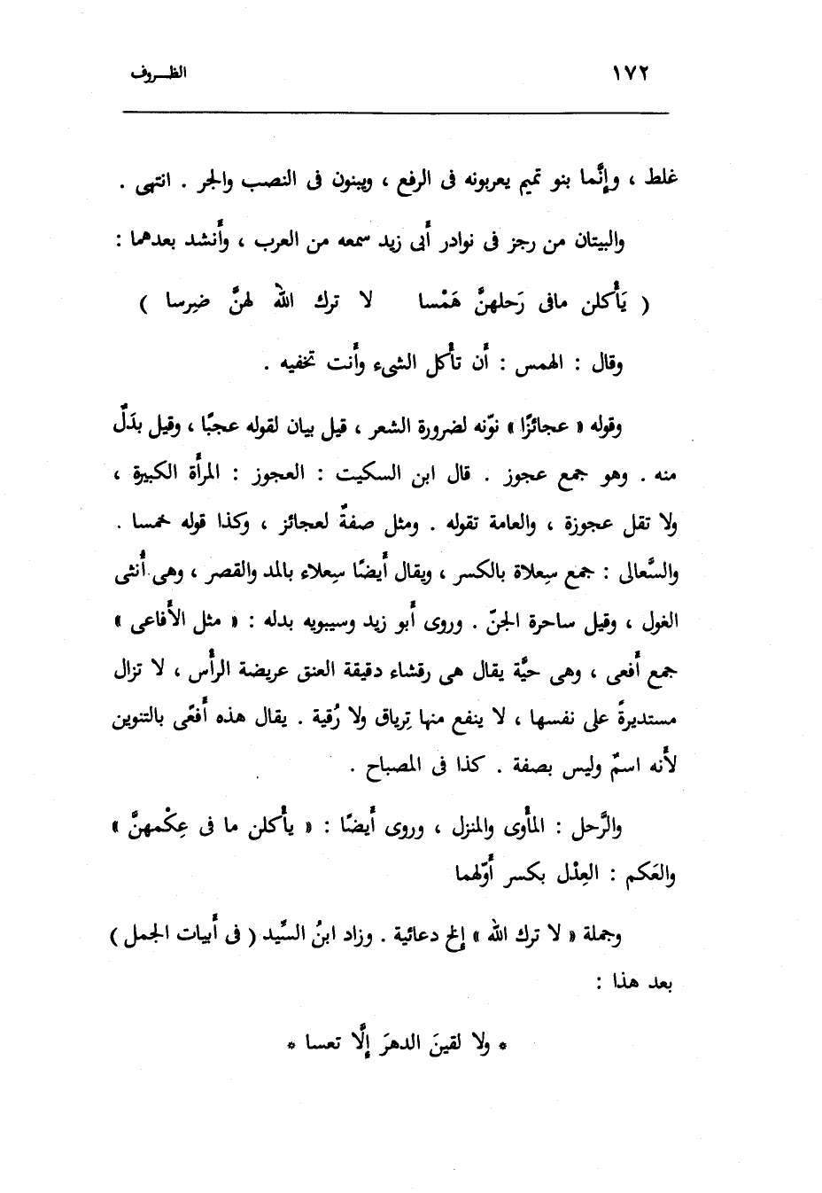 وَجُمْلَة: لَا ترك الله إِلَخ دعائية. وَزَاد ابْن السَّيِّد فِي أَبْيَات الْجمل بعد هَذَا: وَلَا لقين الدَّهْر إِلَّا تعسا