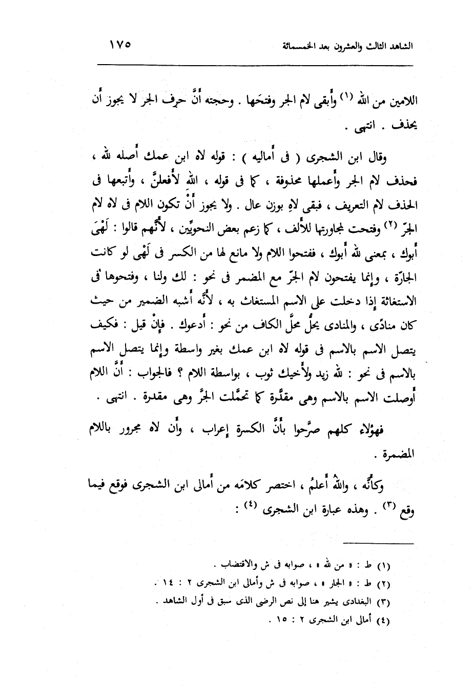 وَكَأَنَّهُ وَالله أعلم اختصر كَلَامه من أمالي ابْن الشجري فَوَقع فِيمَا وَقع. وَهَذِه عبارَة ابْن الشجري: