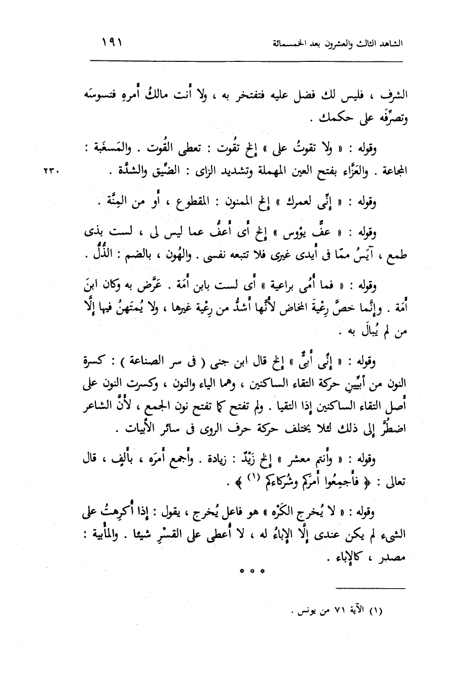 وَقَوله: إِنِّي أبي إِلَخ قَالَ ابْن جني فِي سر الصِّنَاعَة: كسرة النُّون من أبيين حَرَكَة التقاء الساكنين وهما الْيَاء وَالنُّون وَكسرت النُّون على أصل التقاء الساكنين إِذا التقيا. وَلم تفتح كَمَا تفتح نون الْجمع لِأَن الشَّاعِر اضْطر إِلَى ذَلِك لِئَلَّا يخْتَلف حَرَكَة حرف الروي فِي سَائِر الأبيات.