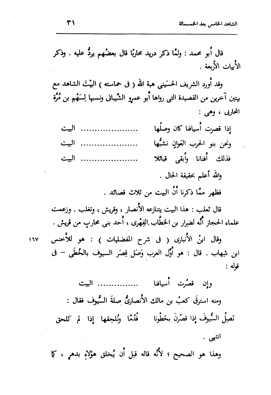 قَالَ ثَعْلَب: هَذَا الْبَيْت يتنازعه الْأَنْصَار وقريش وتغلب. وَزَعَمت عُلَمَاء الْحجاز أَنه لِضِرَار بن الْخطاب الفِهري أحد بني محَارب من قُرَيْش.