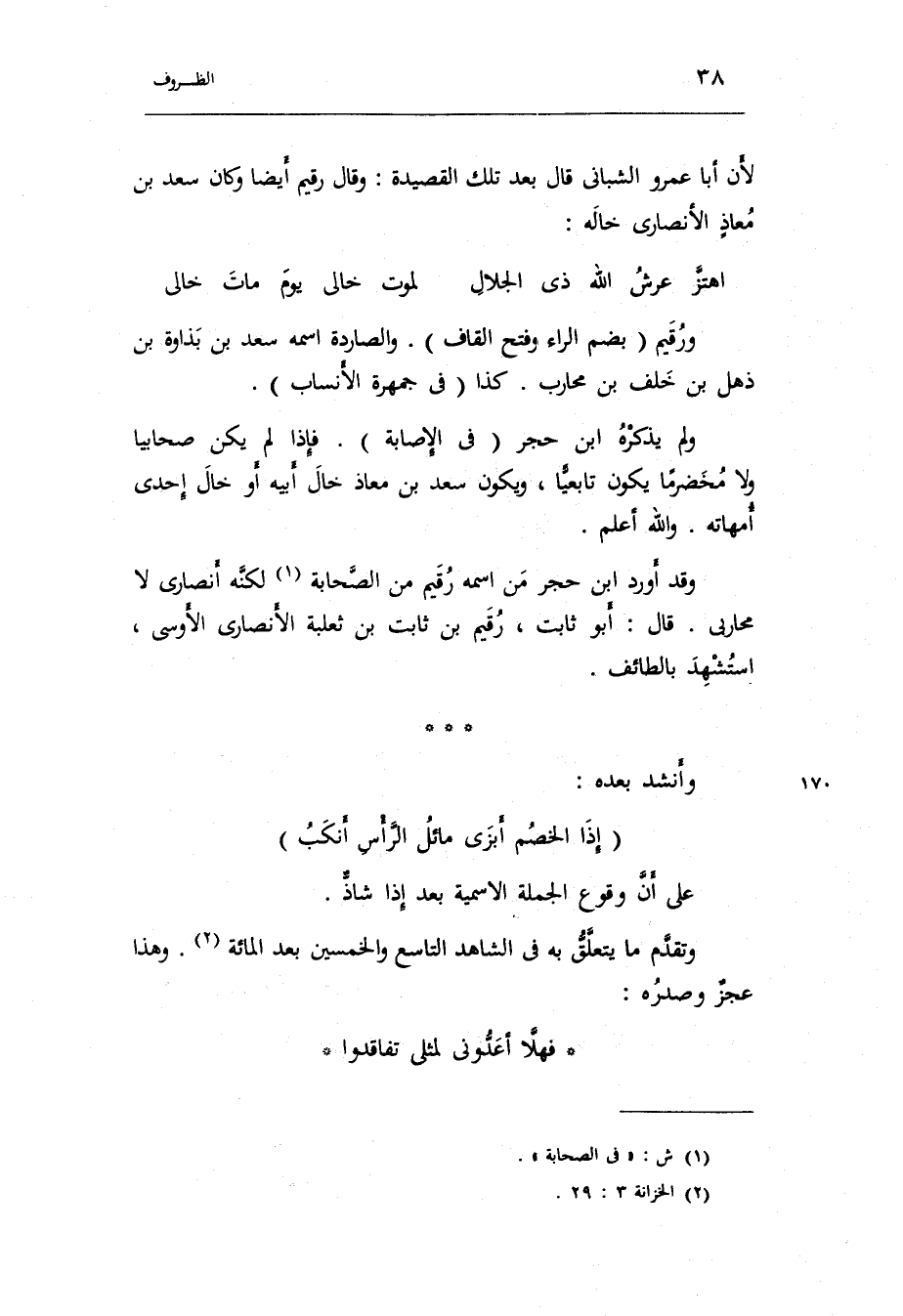 لِأَن أَبَا عَمْرو الشَّيْبَانِيّ قَالَ بعد تِلْكَ القصيدة: وَقَالَ رقيم أَيْضا وَكَانَ سعد بن معاذٍ الْأنْصَارِيّ خَاله: الرجز