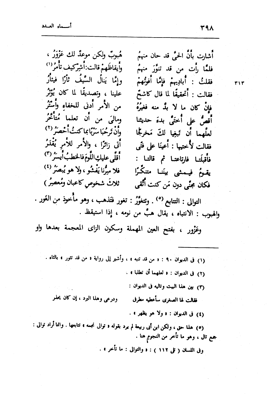 التوالي: التَّتَابُع. وتتغور: تغور فتذهب وَهُوَ مَأْخُوذ من الْغَوْر. والهبوب: الانتباه يُقَال: هَب من نَومه إِذا اسْتَيْقَظَ. وعزور بِفَتْح الْعين الْمُهْملَة وَسُكُون الزَّاي الْمُعْجَمَة بعْدهَا وَاو