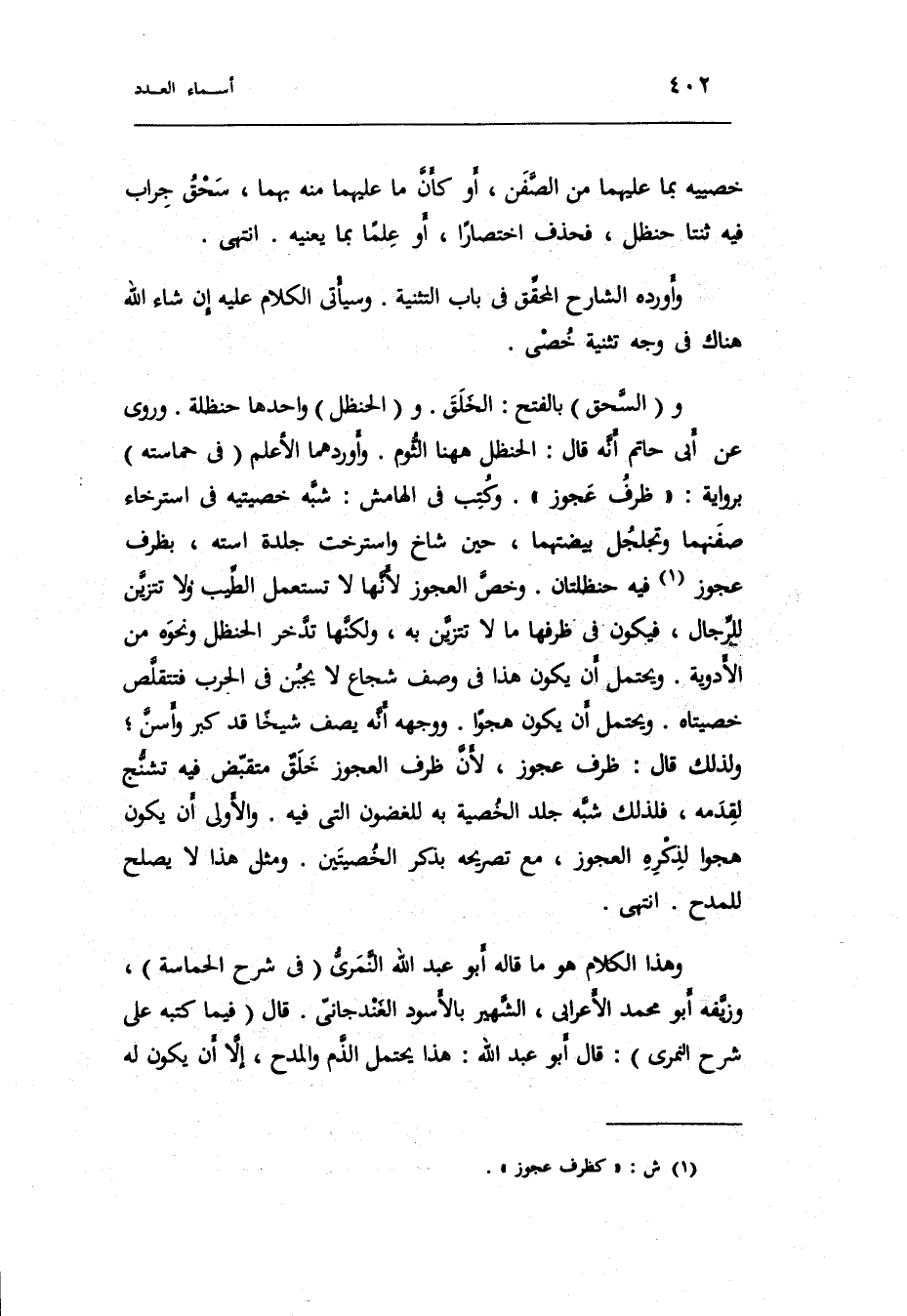 وأوردهما الأعلم فِي حماسته بِرِوَايَة: ظرف عَجُوز. وَكتب فِي الْهَامِش: شبه خصيتيه فِي)