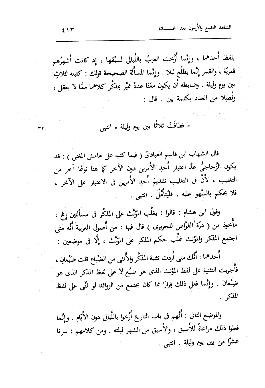 أرخت الْعَرَب بالليالي لسبقها إِذْ كَانَت أشهرهم قمرية وَالْقَمَر إِنَّمَا يطلع لَيْلًا. وَإِنَّمَا الْمَسْأَلَة الصَّحِيحَة قَوْلك: كتبته لثلاثٍ بَين يَوْم وَلَيْلَة.