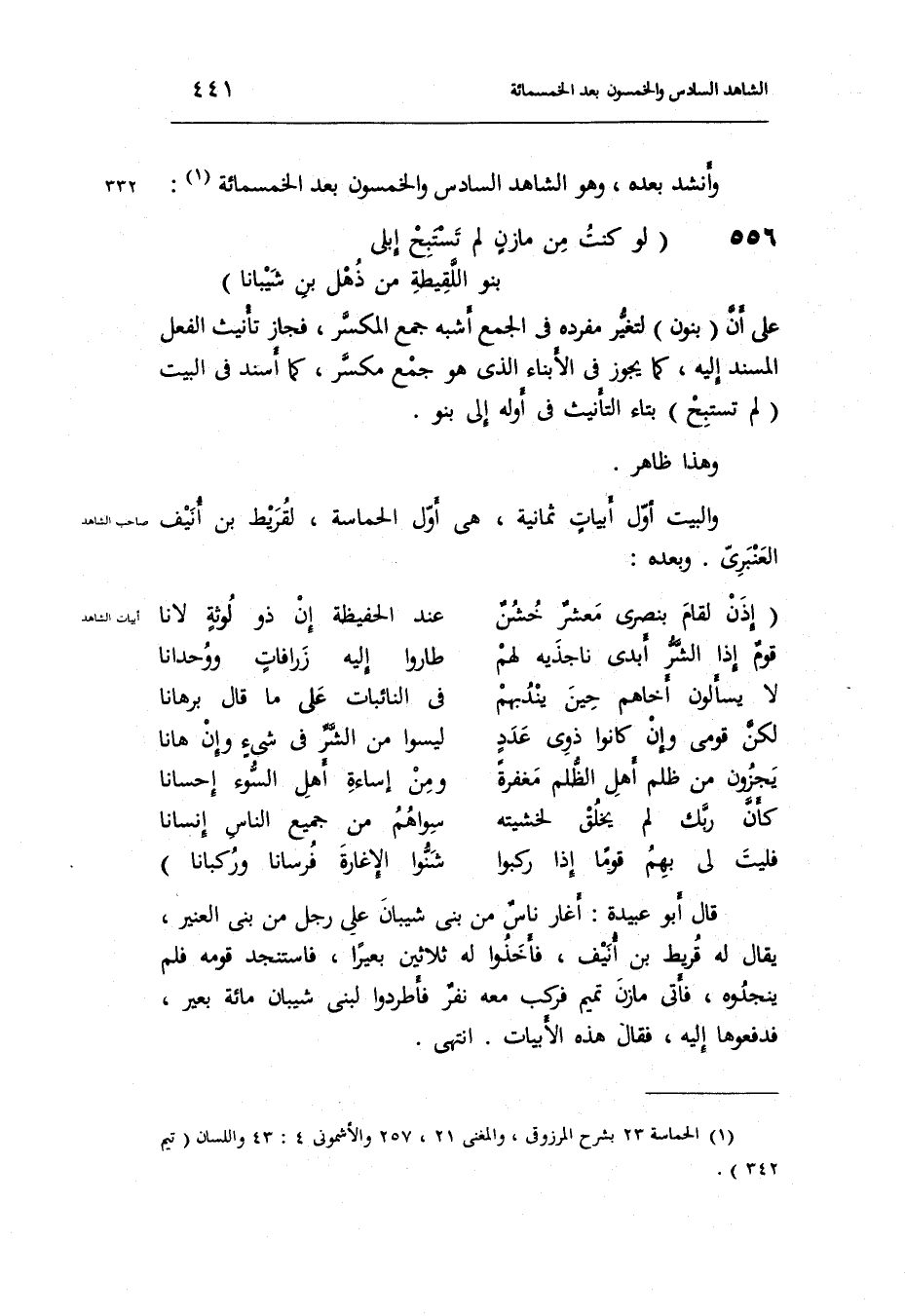 وَالْبَيْت أول أبياتٍ ثَمَانِيَة هِيَ أول الحماسة لقريط بن أنيف الْعَنْبَري وَبعده: