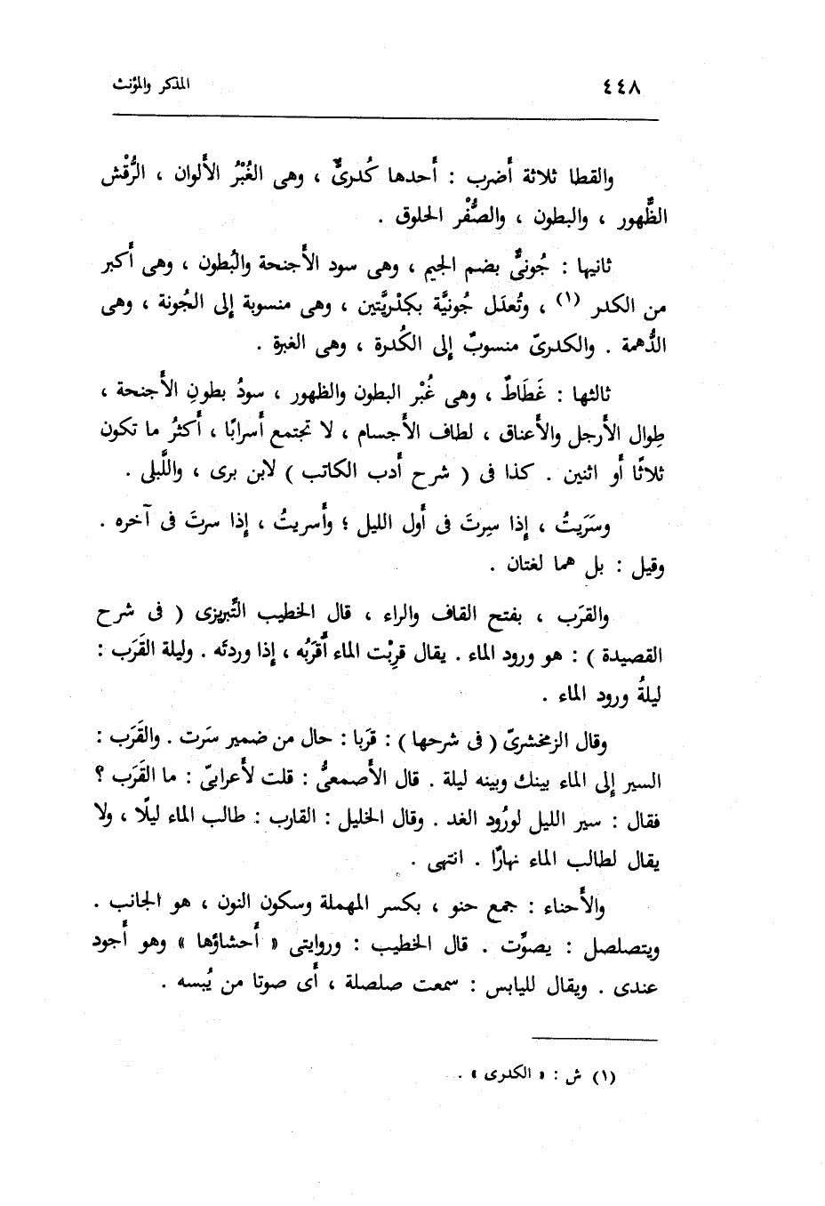 والْقرب بِفَتْح الْقَاف وَالرَّاء قَالَ الْخَطِيب التبريزي فِي شرح القصيدة: هُوَ وُرُود المَاء. يُقَال:)