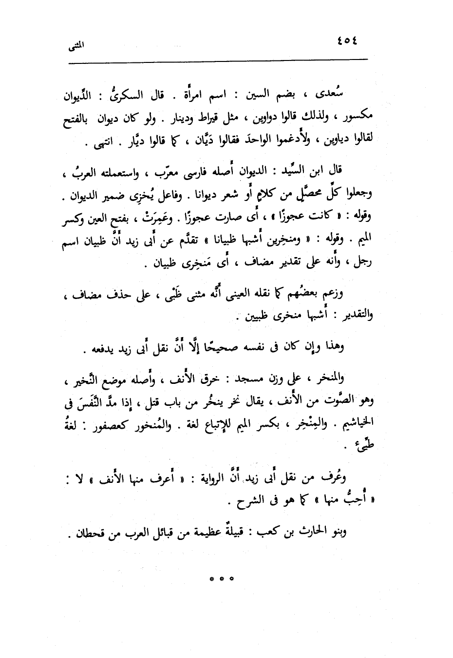 قَالَ السكرِي: الدِّيوَان مكسور وَلذَلِك قَالُوا: دواوين مثل قِيرَاط ودينار. وَلَو كَانَ ديوَان بِالْفَتْح لقالوا: دياوين ولأدغموا الْوَاحِد فَقَالُوا: ديان كَمَا قَالُوا: ديار. انْتهى.