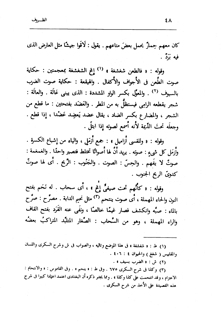 وَقَوله: فالطعن شغشغة: إِلَخ الشغشغة بمعجمتين: حِكَايَة صَوت الطعْن فِي الأجواف والأكفال.