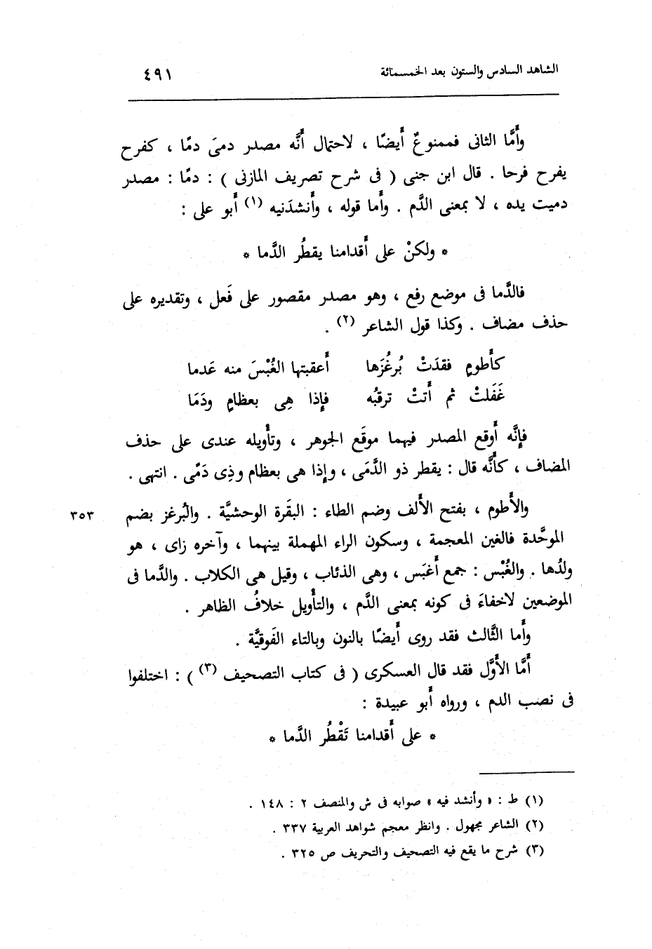 أما الأول فقد قَالَ العسكري فِي كتاب التَّصْحِيف: اخْتلفُوا فِي نصب الدَّم وَرَوَاهُ أَبُو عُبَيْدَة: