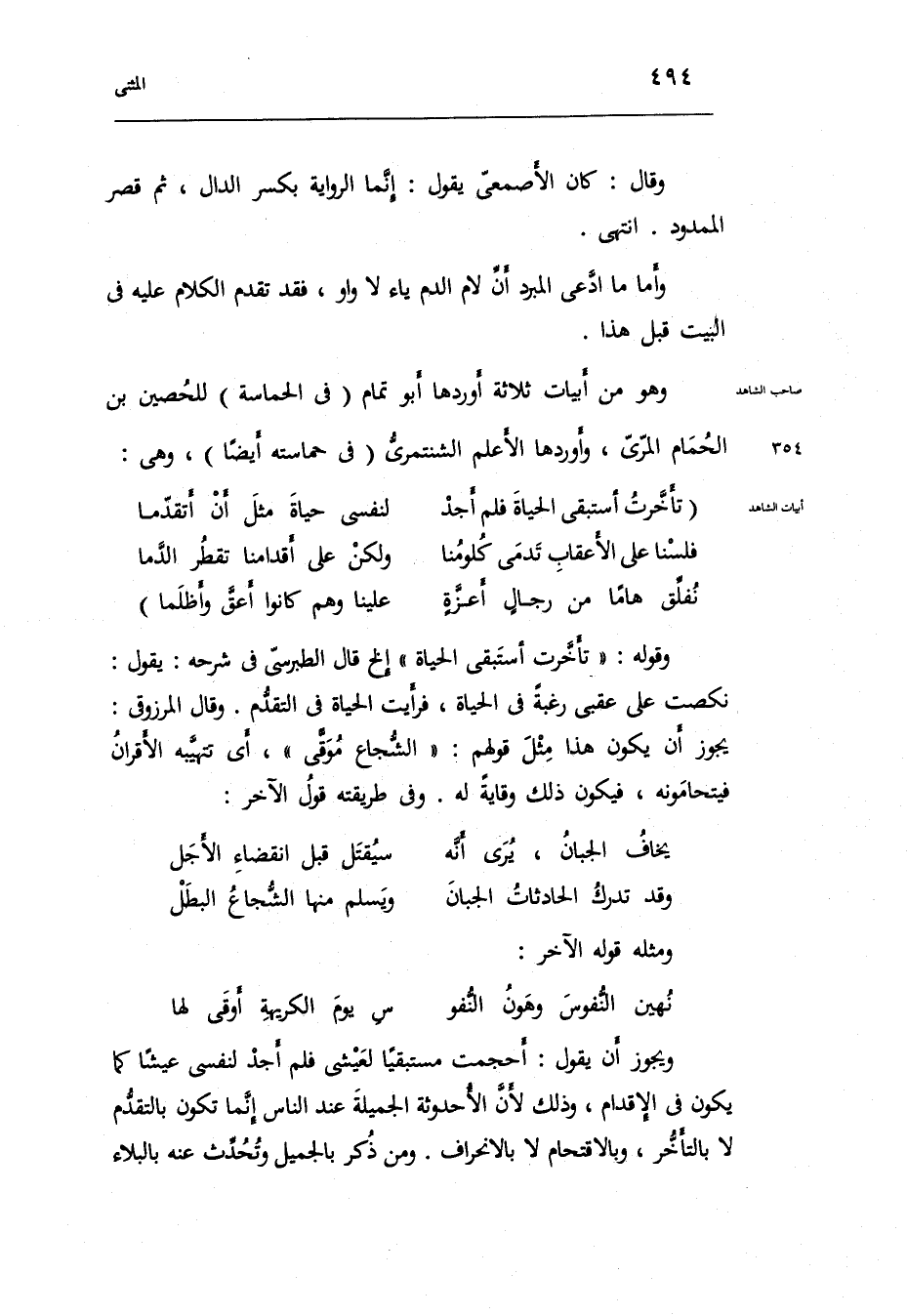 (تَأَخَّرت أستبقي الْحَيَاة فَلم أجد ... لنَفْسي حَيَاة مثل أَن أتقدما)