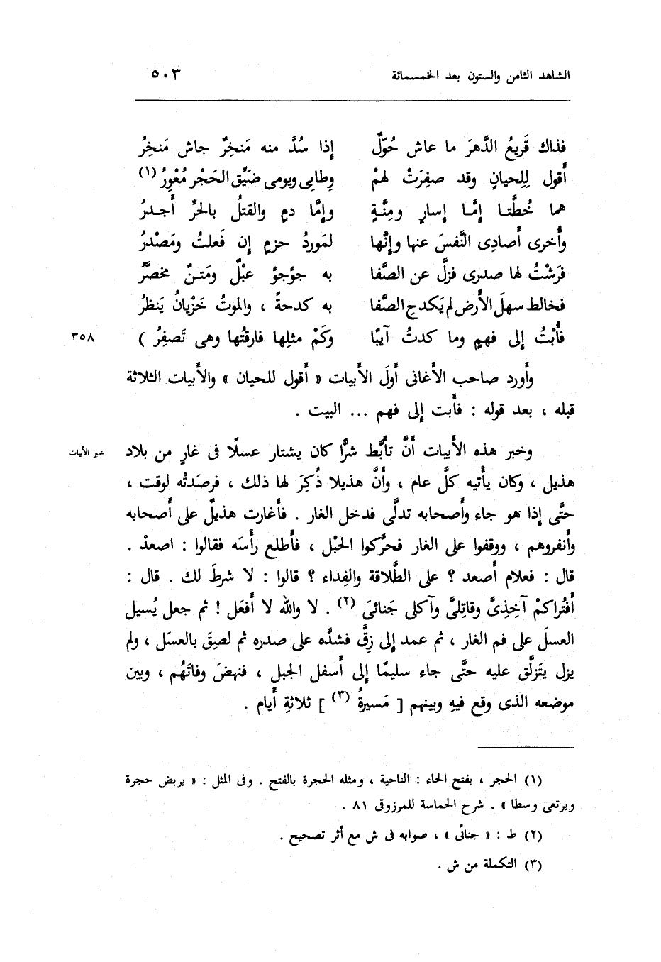 وَأورد صَاحب الأغاني أول الأبيات أَقُول للحيان والأبيات الثَّلَاثَة قبله بعد قَوْله: فَأَبت إِلَى فهم ... . . الْبَيْت.