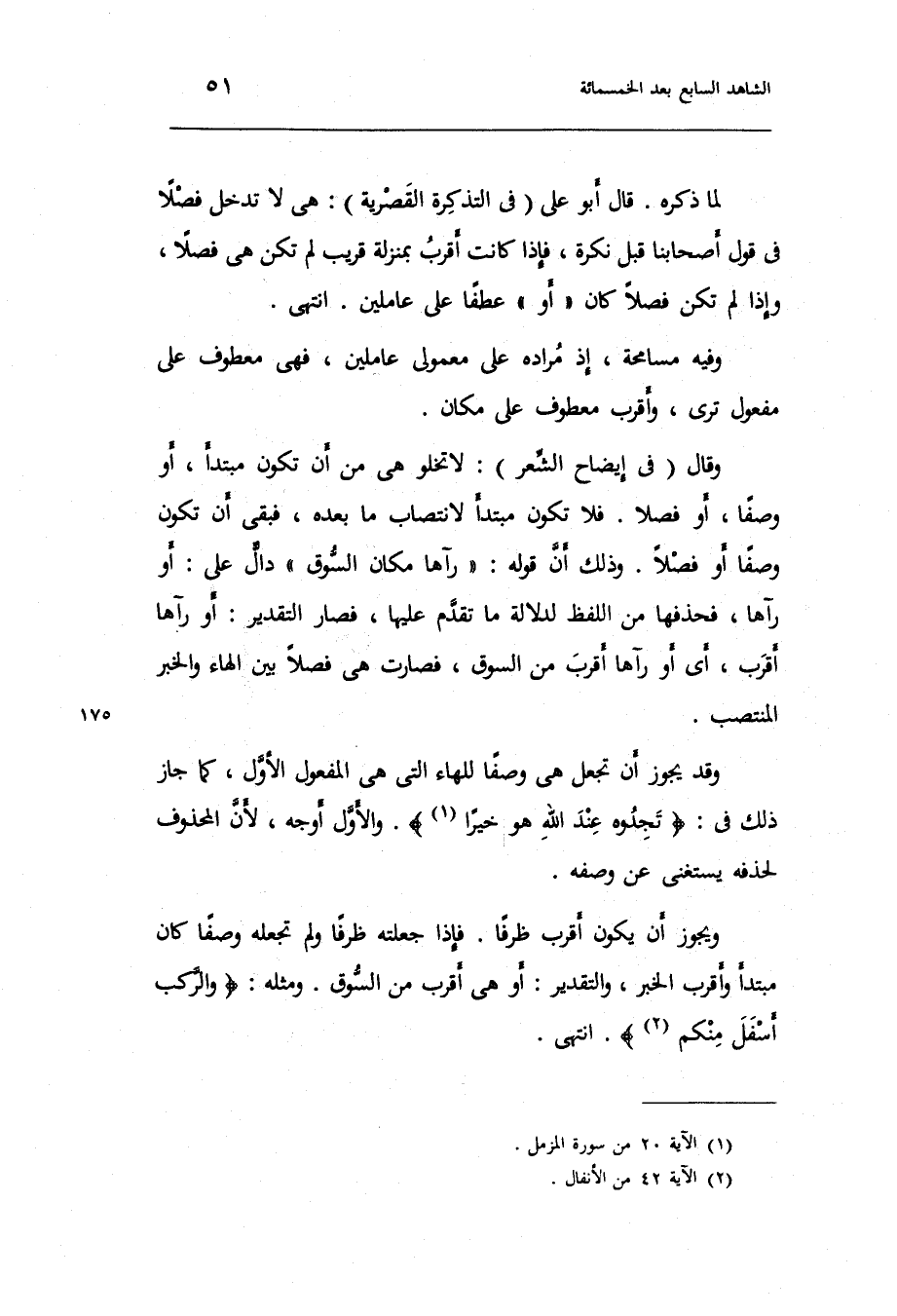 لما ذكره قَالَ أَبُو عَليّ فِي التَّذْكِرَة القصرية: هِيَ لَا تدخل فصلا فِي قَول أَصْحَابنَا قبل نكرَة فَإِذا كَانَت أقرب بِمَنْزِلَة قريب لم تكن هِيَ فصلا وَإِذا لم تكن فصلا كَانَ أَو عطفا على عاملين.